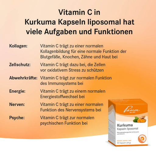 With the recommended daily intake of 3 capsules, the body receives 200 mg of curcumin and 12 mg of vitamin C. The pack contains 90 capsules, enough for approximately one month. The tasteless capsules are not only easy to swallow but also convenient to take with you.