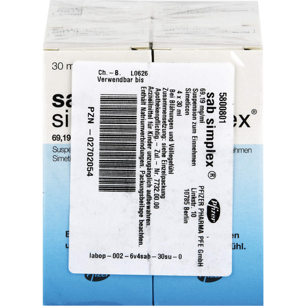sab simplex 69.19 mg/ml Suspension. Active ingredient: Simethicone. Indications: For the symptomatic treatment of gas-related gastrointestinal complaints, e.g., flatulence (meteorism), bloating; for preparation for abdominal examinations, such as X-rays and sonography (ultrasound examinations), and for preparation for gastroduodenoscopy (gastrointestinal endoscopy); for increased gas formation after surgery and in cases of detergent poisoning.