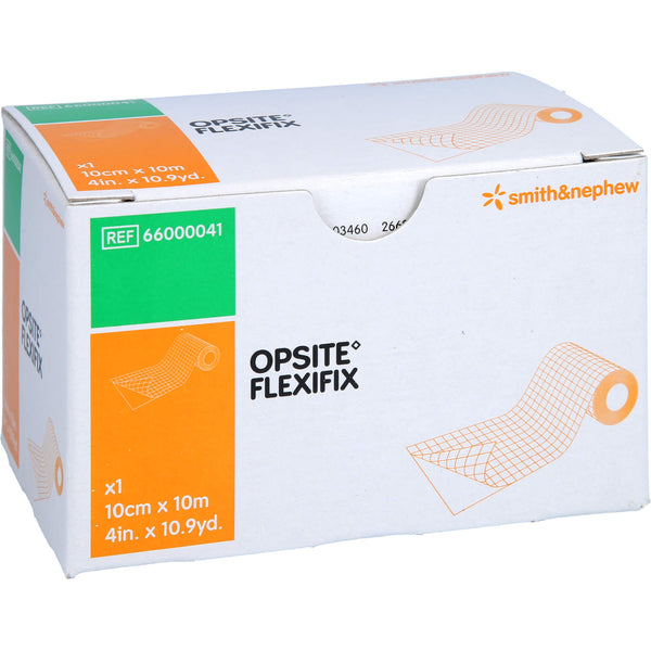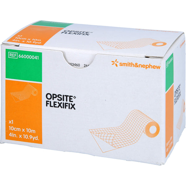 Opsite Flexifix is a transparent film on a roll for securing primary wound dressings. The film is waterproof and allows the patient to shower with the dressing on. The polyurethane film forms an effective barrier against bacteria, thus minimizing the risk of external infection. Its water vapor permeability prevents skin maceration. The film is highly conformable and stretchable to increase patient comfort. The surface of Opsite Flexifix is particularly smooth, so the film reduces the transmission of shear forces to the skin.