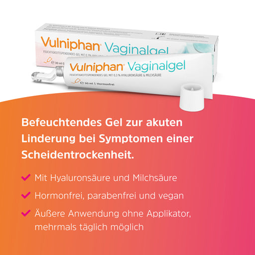 The Vulniphan® portfolio for your well-being . Use Vulniphan® products to relieve vaginal dryness: Vulniphan® Vaginal Gel is a moisturizing gel with hyaluronic acid and lactic acid for the acute relief of symptoms of vaginal dryness. Vulniphan®