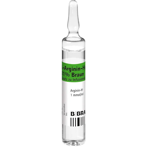 L-Arginine Hydrochloride 21% Brown is a concentrate for infusion solution, meaning it is added to an infusion solution before administration. It is a clear, colorless aqueous solution. It is available in 20 ml glass ampoules, in packs of 5 and 10 ampoules.