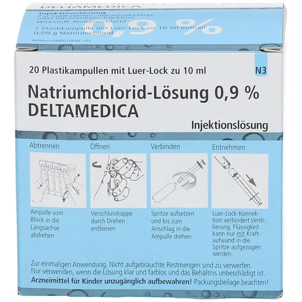 Deltamedica Isotonic Sodium Chloride Solution 0.9% Infusion Solution. Active ingredient: Sodium chloride. Indications: Fluid and electrolyte replacement in hypochloremic alkalosis, chloride loss, short-term intravascular volume replacement, hypotonic dehydration, isotonic dehydration.