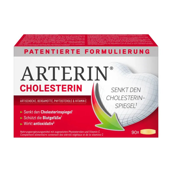 Arterin Cholesterol contains a targeted combination of phytosterols, bergamot extract, artichoke extract, and vitamin C. These ingredients contribute to supporting normal cholesterol levels and complement a cholesterol-conscious diet.