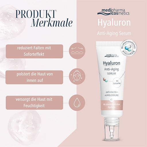 Moisturized, wrinkle-reduced, and nourished skin – with the Hyaluron Anti-Aging Serum from medipharma cosmetics