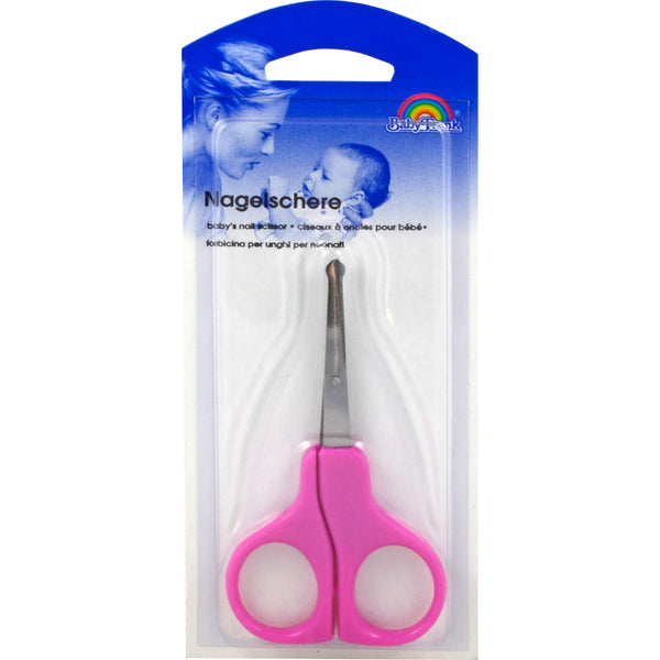Baby nail scissors with rounded tips.Plastic handles. Color: pink.As of: 11/2025