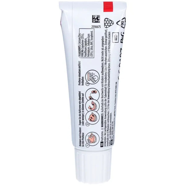 Adhesive cream for full and partial dentures with strong hold, high wearing comfort and a tasteless formula – for a secure feeling all day long
