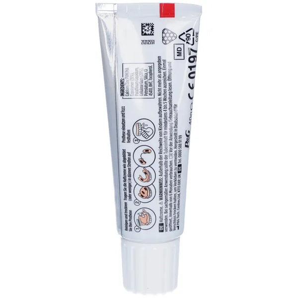 - Improved wearing comfort than without adhesive and individually adjusted fit thanks to the formation of a cushion between the gums and dentures.
