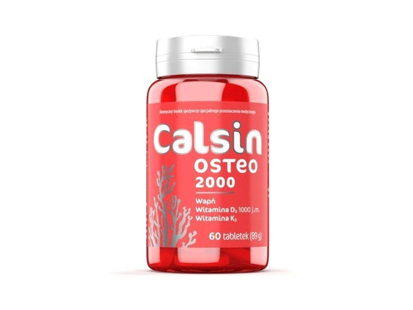 Calsin Osteo 2000 is a preparation for dietary treatment. It is characterized by complex composition. Contains calcium derived from red limestone sea algae and calcium carbonate. This ingredient participates in the proper course of bone mineralization. It further limits blood vessel permeability and effectively limits the sensation of sensitization. Calcium absorption increases the vitamin D3 contained in the preparation. It is also responsible for regulating phosphorus levels and promoting proper muscle and immune function. Vitamin K2 is involved in blood coagulation and contributes to maintaining healthy and strong bones. Calsin Osteo 2000 significantly strengthens the skeletal system and is beneficial for the condition of people with osteoporosis, osteomalacia or osteopenia.