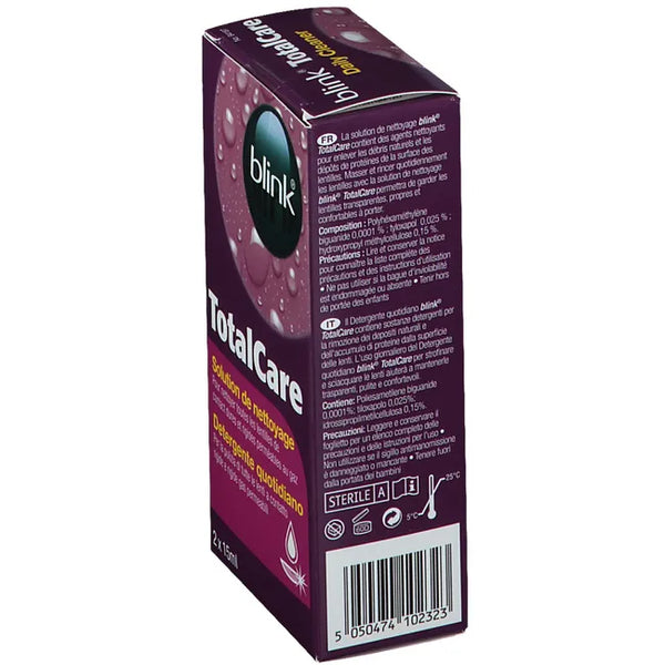blink® TotalCare Daily Cleanser contains active ingredients to remove all natural deposits and protein buildup from the lens surface. Daily wiping and rinsing with blink® TotalCare Daily Cleanser keeps your lenses clear, clean, and comfortable.
