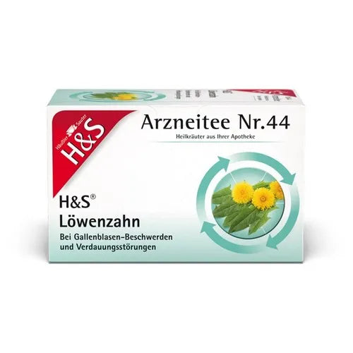 H&S Dandelion. Indications: Disturbances of bile flow with digestive complaints such as flatulence and bloating, loss of appetite. For risks and side effects, read the package insert or consult your doctor or pharmacist. H&S Tee-Gesellschaft mbH & Co. · Heidachstr. 62 · D-88079 Kressbronn/Lake Constance.
