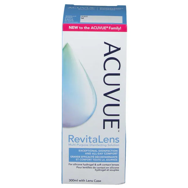 ACUVUE™ RevitaLens All-in-One Disinfectant Solution is used to clean, rinse, disinfect, store, remove deposits including lipids and proteins, and lubricate soft contact lenses.