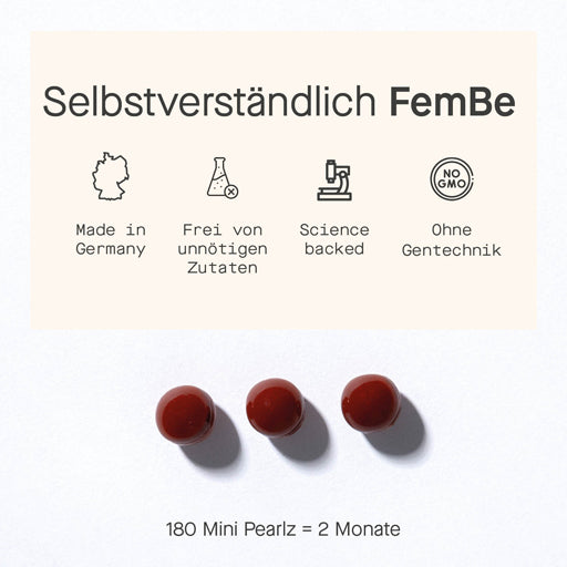 Thanks to the Mini-Pearlz technology, the capsules are particularly easy to take. FemBe Be4 Skin + Nail is free of unnecessary additives and can be easily integrated into your daily routine – for healthy, resilient skin and nails.