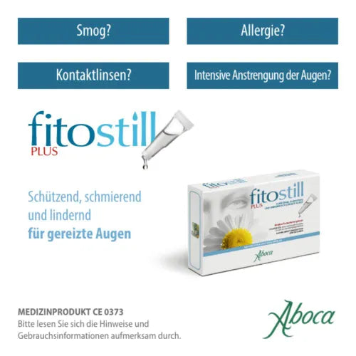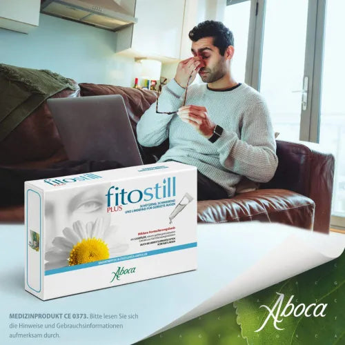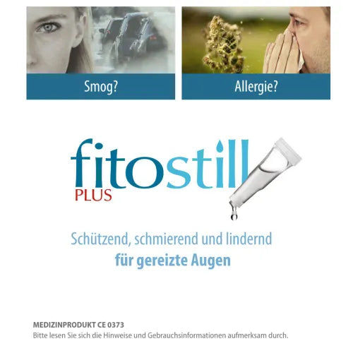 Fitostill Plus eye drops, available in convenient sterile single-dose ampoules, are a specific aid for the prevention and treatment of reddened and strained eyes. By forming a protective film, the product maintains the correct level of moisture and helps restore the natural lubricating function of the eye's tear film. The ingredients of Fitostill Plus characterize the product's main actions: