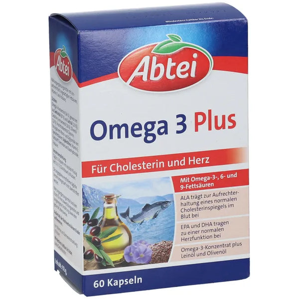 Abtei Omega 3 Plus contributes to a healthy diet and is rich in unsaturated fatty acids. The capsules contain valuable omega-3, 6, and 9 fatty acids. This supports the maintenance of normal cholesterol levels and normal heart function. Vitamin E contributes to cell protection against oxidative stress, while folic acid contributes to healthy homocysteine metabolism.