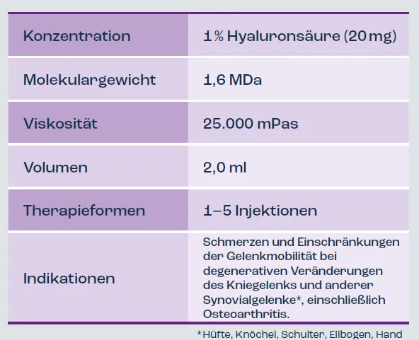 At the same time, it supports the natural shock-absorbing function of the cartilage and can thus contribute to pain relief and improved joint mobility.