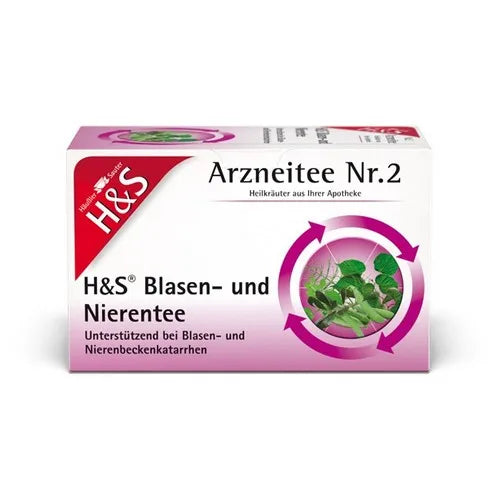 H&S Bladder and Kidney Tea. Indications: To support the treatment of bladder and kidney pelvis catarrh. For risks and side effects, read the package insert or consult your doctor or pharmacist. H&S Tee-Gesellschaft mbH & Co. · Heidachstr. 62 · D-88079 Kressbronn/Lake Constance.