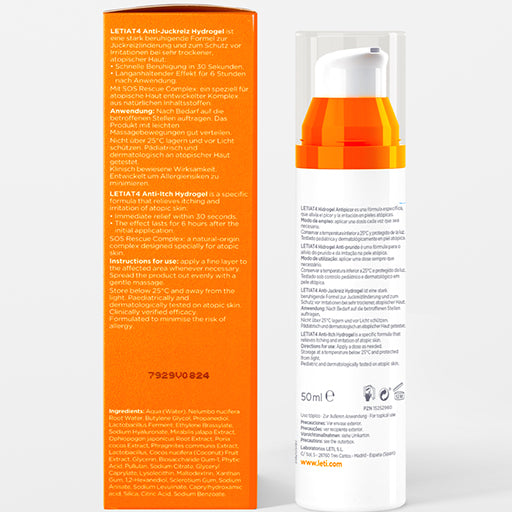 • The acute care LETIAT4 Anti-Itch Hydrogel is the SOS helper for agonizing itching.