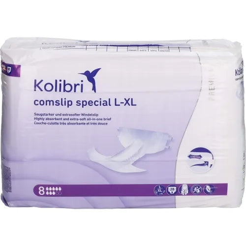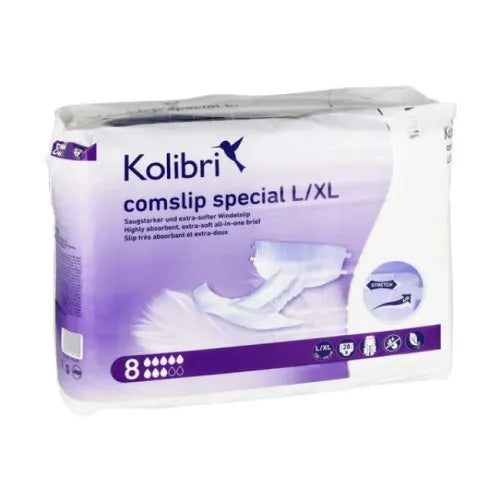 Thanks to the stretchy side panels, Kolibri comslip premium diaper briefs can also be easily pulled up and down like underwear. This makes them ideal for toilet training according to expert standards.