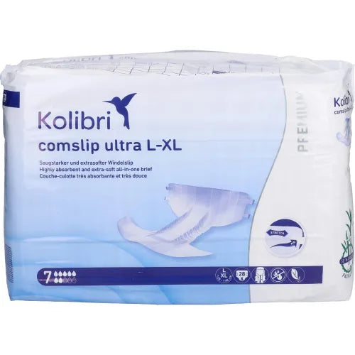 Thanks to the stretchy side panels, Kolibri comslip premium diaper briefs can be easily pulled up and down like underwear. This makes them ideal for toilet training according to expert standards.
