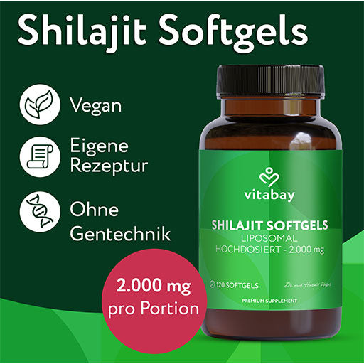 2. 2000 mg Shilajit – High-Dose Support from Nature Our product contains 2000 mg of Shilajit per daily dose – in a particularly concentrated formulation. Standardized to 80% fulvic acid and 12% humic acid, it provides a targeted supply of bioactive components that are among the naturally occurring ingredients and are the subject of biochemical research.