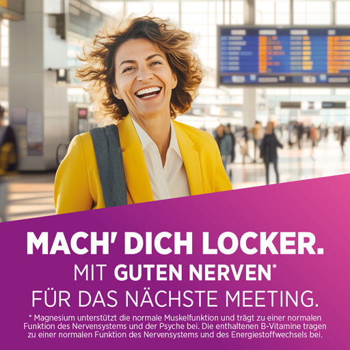Biolectra® MAGNESIUM 400 mg Nerves & Muscles Vital is a special combination: it combines high-dose depot magnesium with important B vitamins. Together, they help the body cope better with stress. B vitamins are also known as nerve vitamins for good reason, as a good supply, especially of B1, B2, B6, and B12, is crucial for strong nerves. Together with magnesium, they support the normal function of the nervous system. The muscle mineral magnesium also revitalizes muscles and contributes to normal muscle function. If there is insufficient magnesium in the muscle cells, tension or cramps can occur. But magnesium doesn't just relax muscles; it also inhibits the release of stress hormones and helps to better manage stress and remain relaxed. This is why magnesium is also known as the "mineral of inner peace." Well-stocked magnesium stores counteract restlessness and nervousness and contribute to reducing tiredness and fatigue.