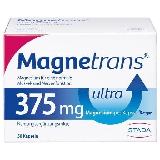 Our body cannot produce magnesium itself. Therefore, a sufficient intake through food is necessary. You can meet this need with groceries. The food supplement Magnetrans ® 375 mg ultra can also contribute to an additional supply of magnesium. Magnetrans ® ultra 375 mg capsules help you to cover 100% of your daily magnesium requirement1 with just one capsule a day and to contribute to replenishing the body's own magnesium deposits. Magnetrans ® 375 mg ultra capsules are lactose and gluten free and suitable for vegans.